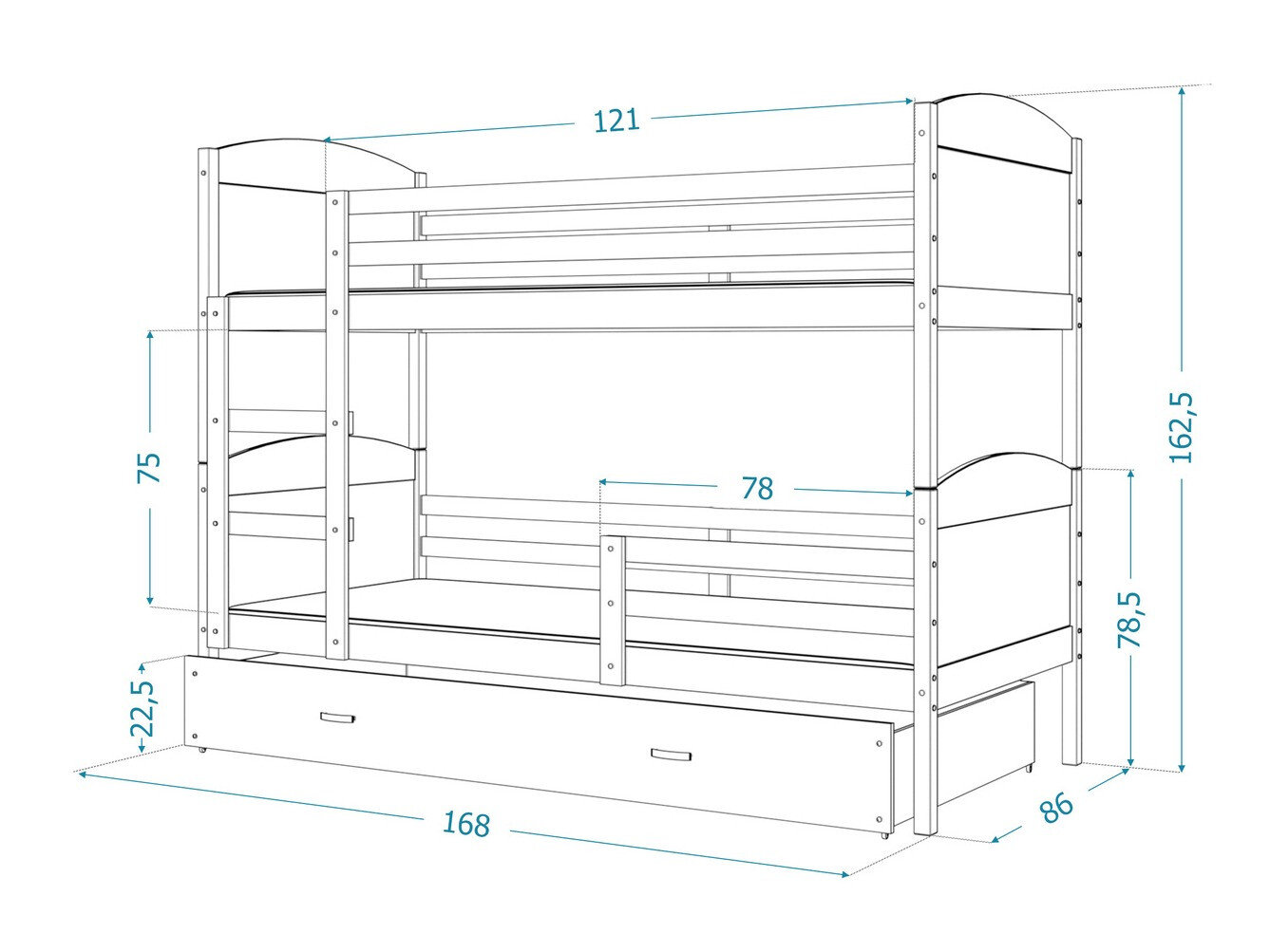 Sengen er fantastisk, overskredet mine forventninger til kvaliteten af materialerne. Kun her fandt jeg en mindre størrelse jeg ledte efter - 80x160. Det ser solidt, robust ud, det tog mig næsten hele dagen at sætte sammen, fordi jeg gjorde det selv, men det er ikke så kompliceret. Det gode er, at du kan vælge, hvilken side stigen skal stå på. Af denne grund forbliver der et vist antal huller på lamellerne, men de kan nemt dækkes med klistermærker eller propper. Til prisen er den fantastisk - og børnene nyder den meget! Kan varmt anbefales!
