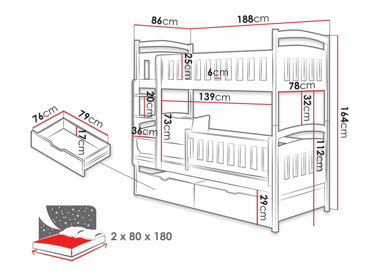 - 80 x 180 cm