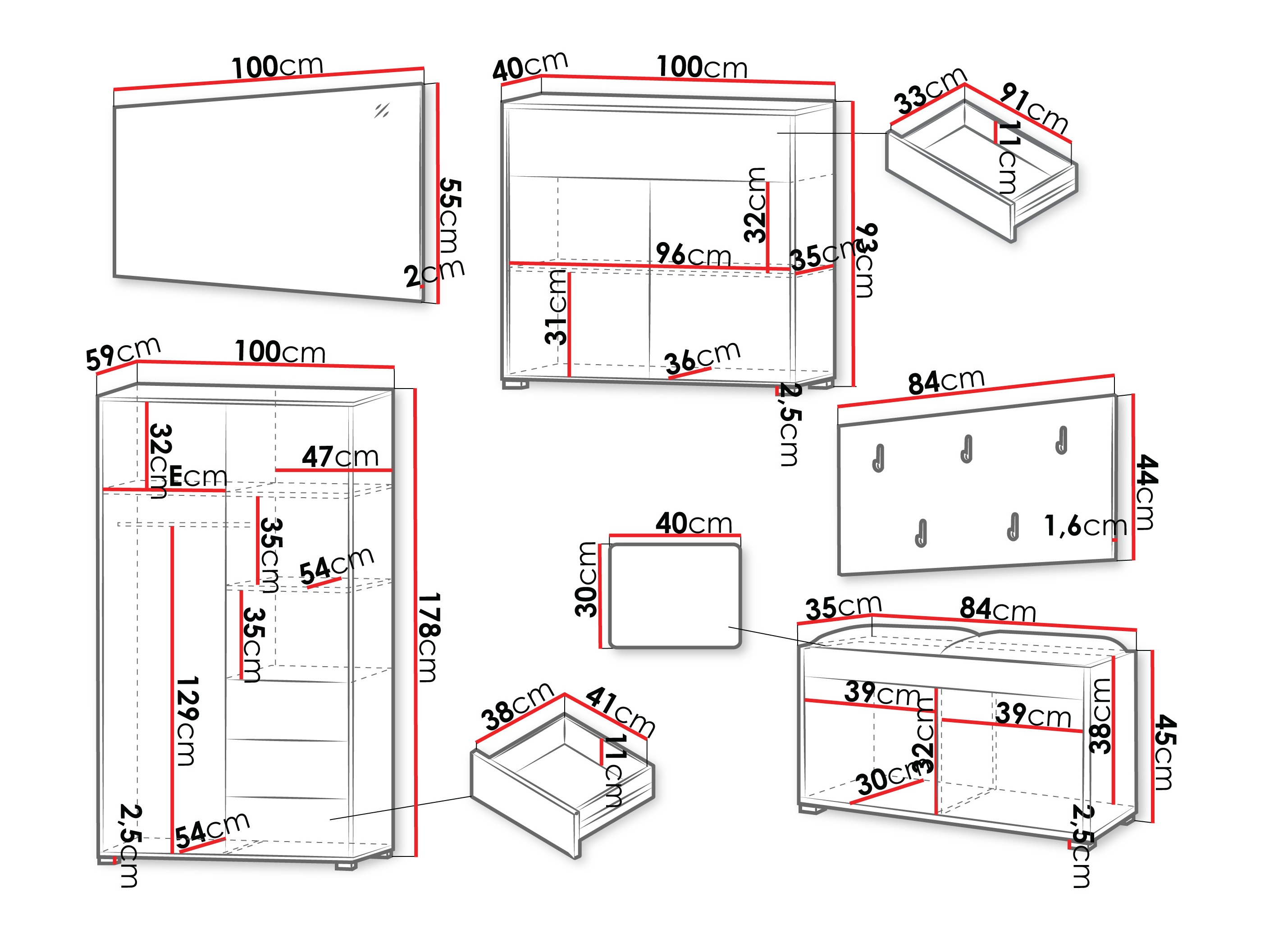 Dimensioner og funktioner