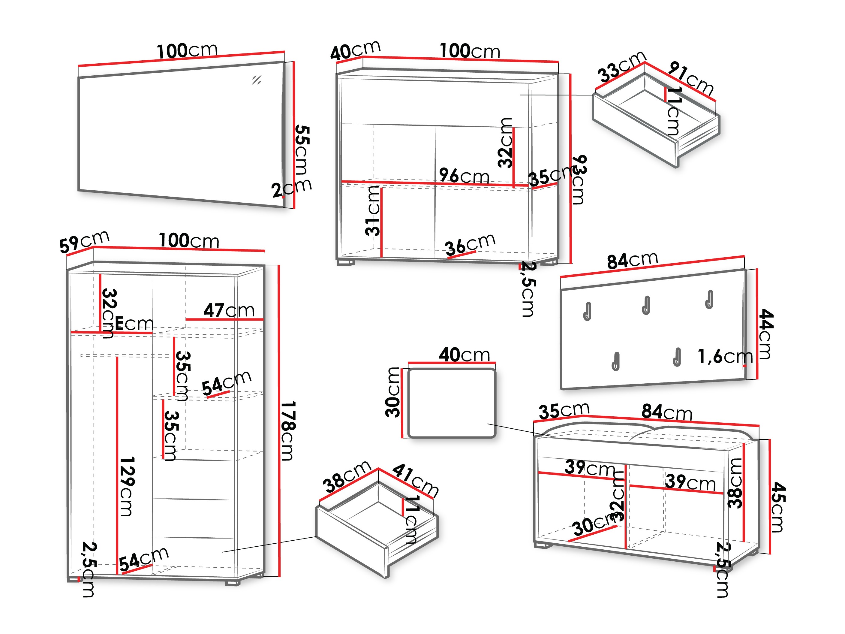 Dimensioner og funktioner