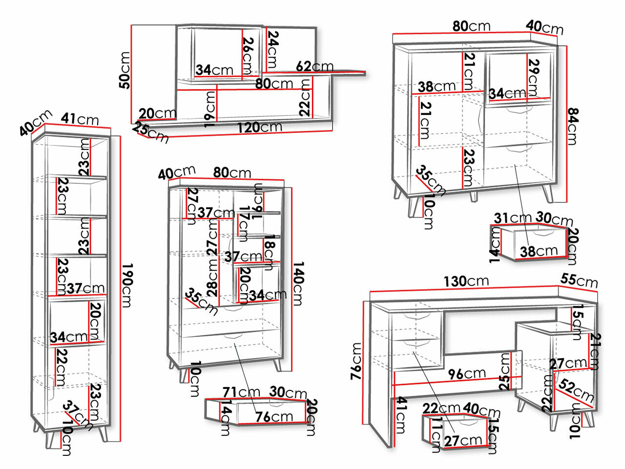 190 x 41 x 40; 140 x 8 x 40 cm