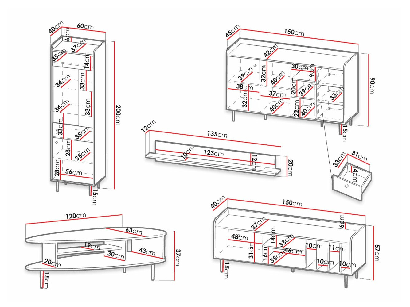 Kommode dimensioner: