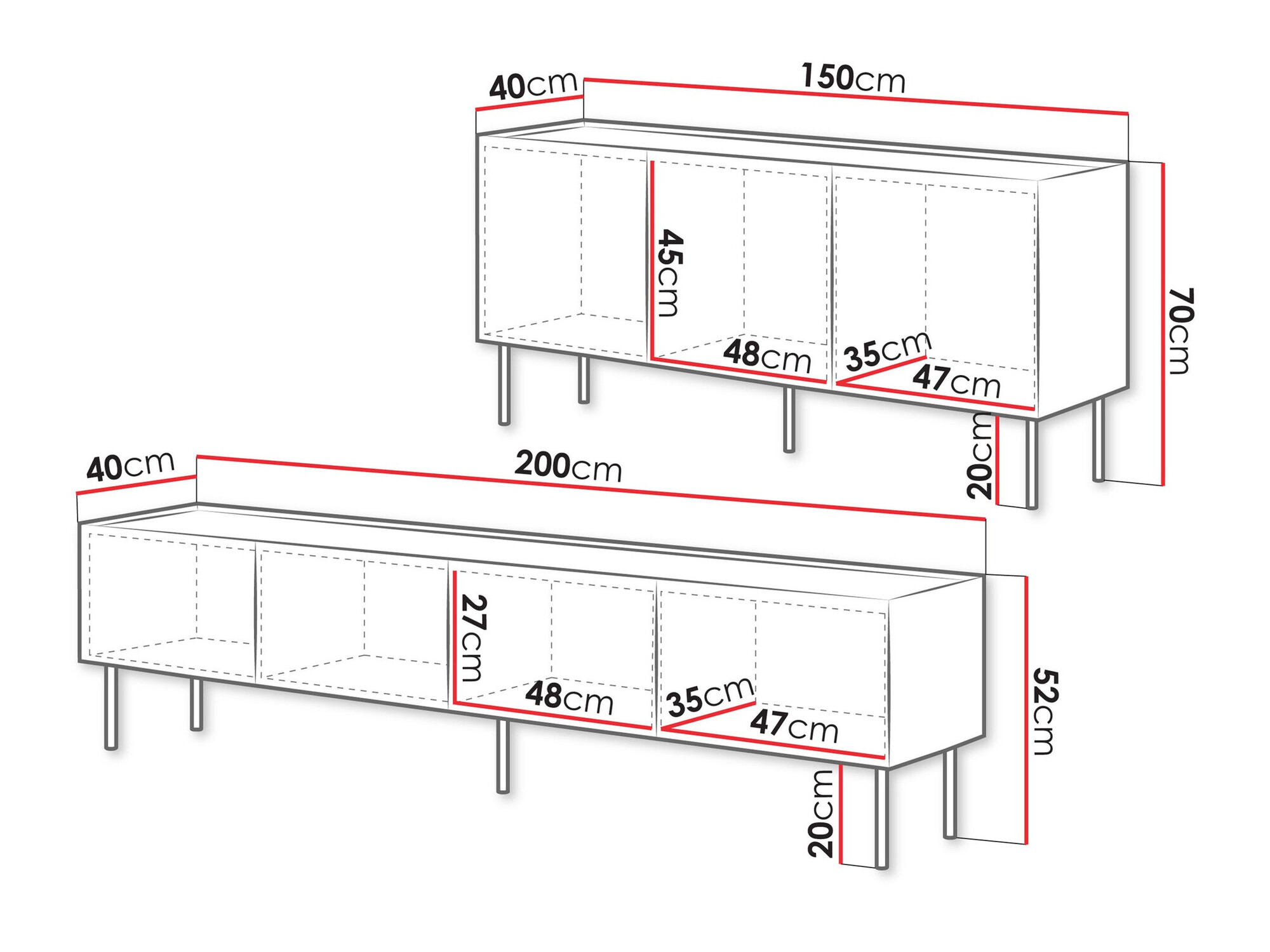 52 x 200 x 40 cm