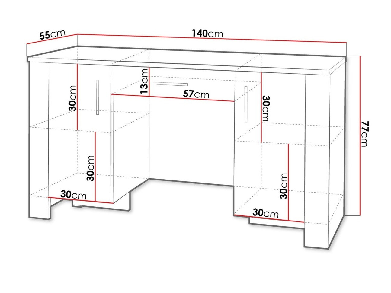 Det har et interessant design, det er stabilt, det rummer mange ting, højden af skabene gør det lettere at rengøre gulvet under det, brættet foran benene bevarer væggen bagved.