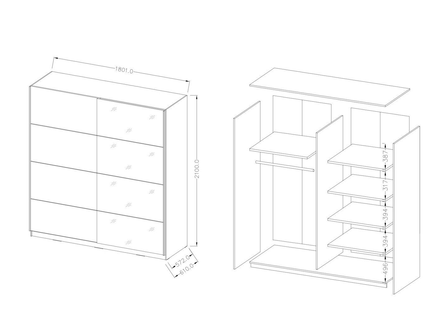 Kvalitet, nem montering, moderne design. Spejlene kan fordeles på siderne af garderoben efter alles fantasi.