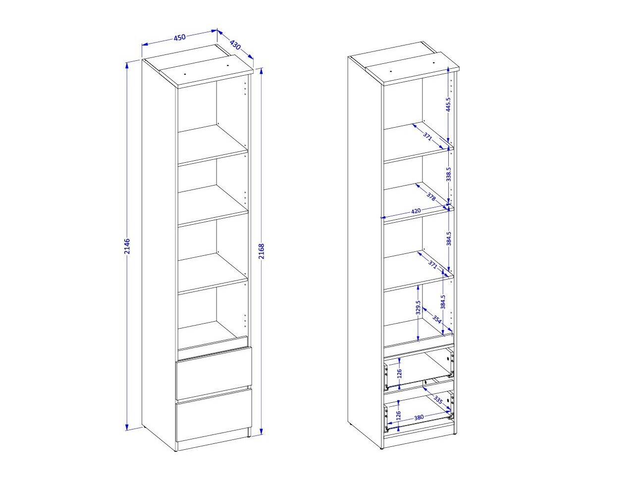 Reol dimensioner: