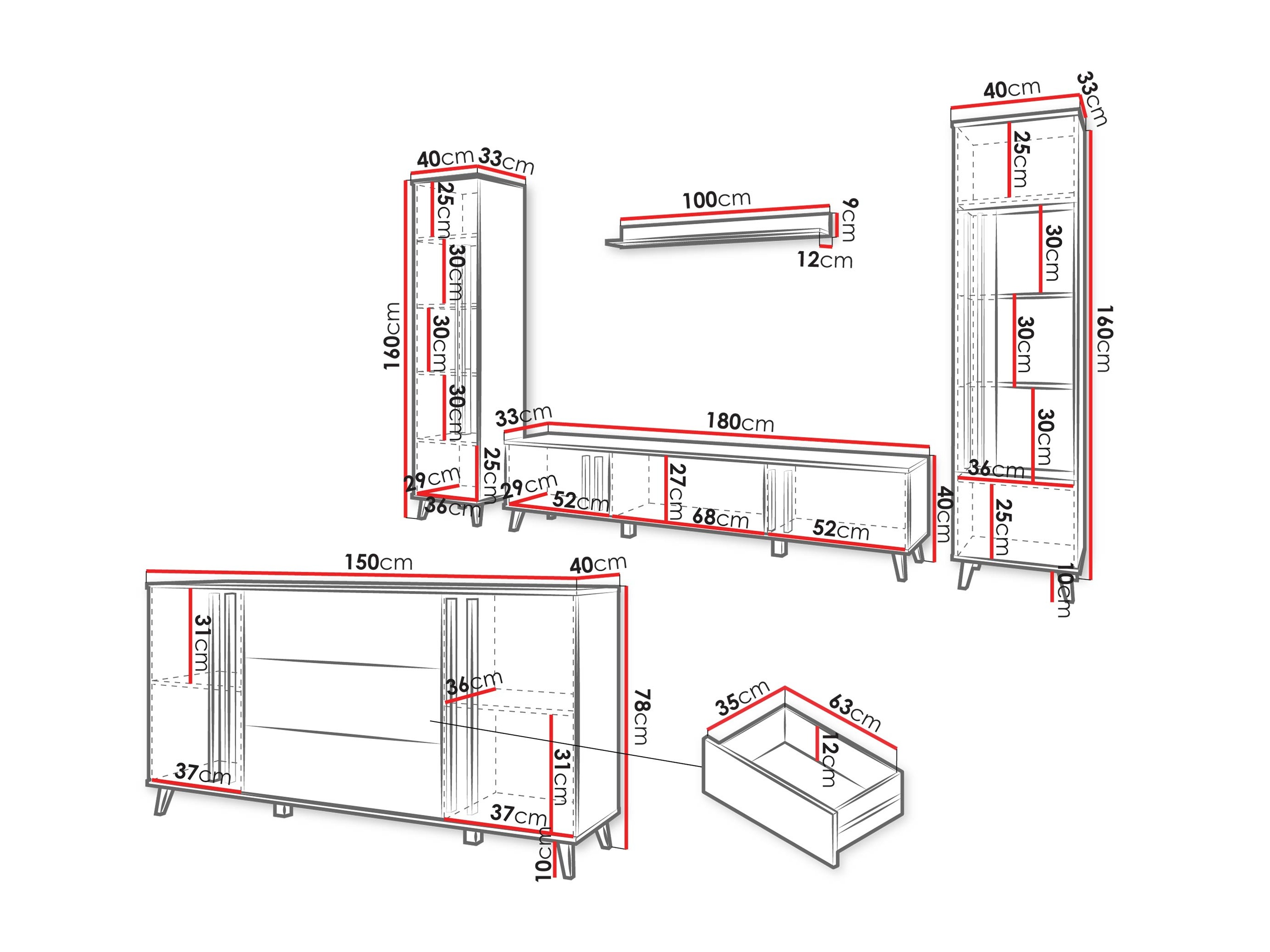 40 x 180 x 33 cm