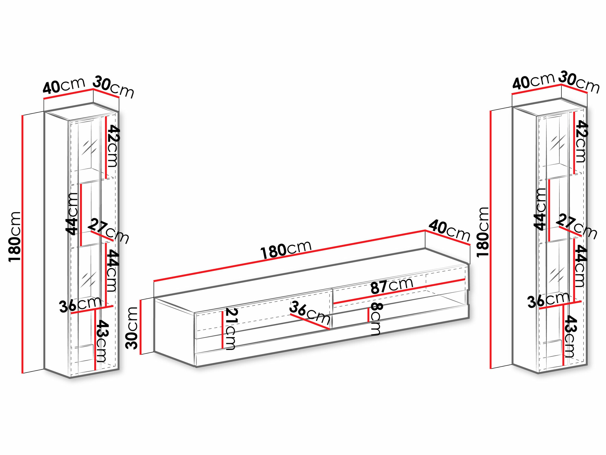 30 x 180 x 40 cm