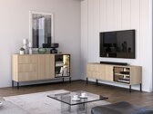 Disse møbler i moderne stil udmærker sig ved deres rene linjer og raffinerede æstetik, hvilket gør, at de nemt passer ind i indretninger i mange forskellige stilarter. De minimalistiske håndtag er kombineret med en praktisk trykmekanisme, der sikrer, at fronterne fremstår visuelt ensartede og rene. Et integreret soft-close-system garanterer langsom og jævn lukning af låger og skuffer. Indbygget LED-belysning i hylderne tilføjer en ekstra følelse af varme og modernitet, idet den diskret oplyser rummet og fremhæver møblernes designdetaljer. Det er et fremragende valg for dem, der søger møbler, der kombinerer funktionalitet med elegant design.