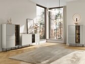 Nogle gange længes vi efter et hjem med færre distraktioner, mindre støj og mere ro. I sådanne rum bliver møblerne mere en kulisse, der diskret tilpasser sig hverdagslivets rytme. Den minimalistiske design af denne kollektion bidrager til at opretholde et rent og ryddeligt interiør. En praktisk åbningsmekanisme gør hverdagen lettere, da døre og skuffer kan åbnes uden besvær med et let tryk. Energieffektiv LED-belysning oplyser rummet blidt og skaber en varm, hyggelig atmosfære. Den blide kashmirfarve giver en følelse af ro og varme, så møblerne smelter naturligt sammen med omgivelserne.