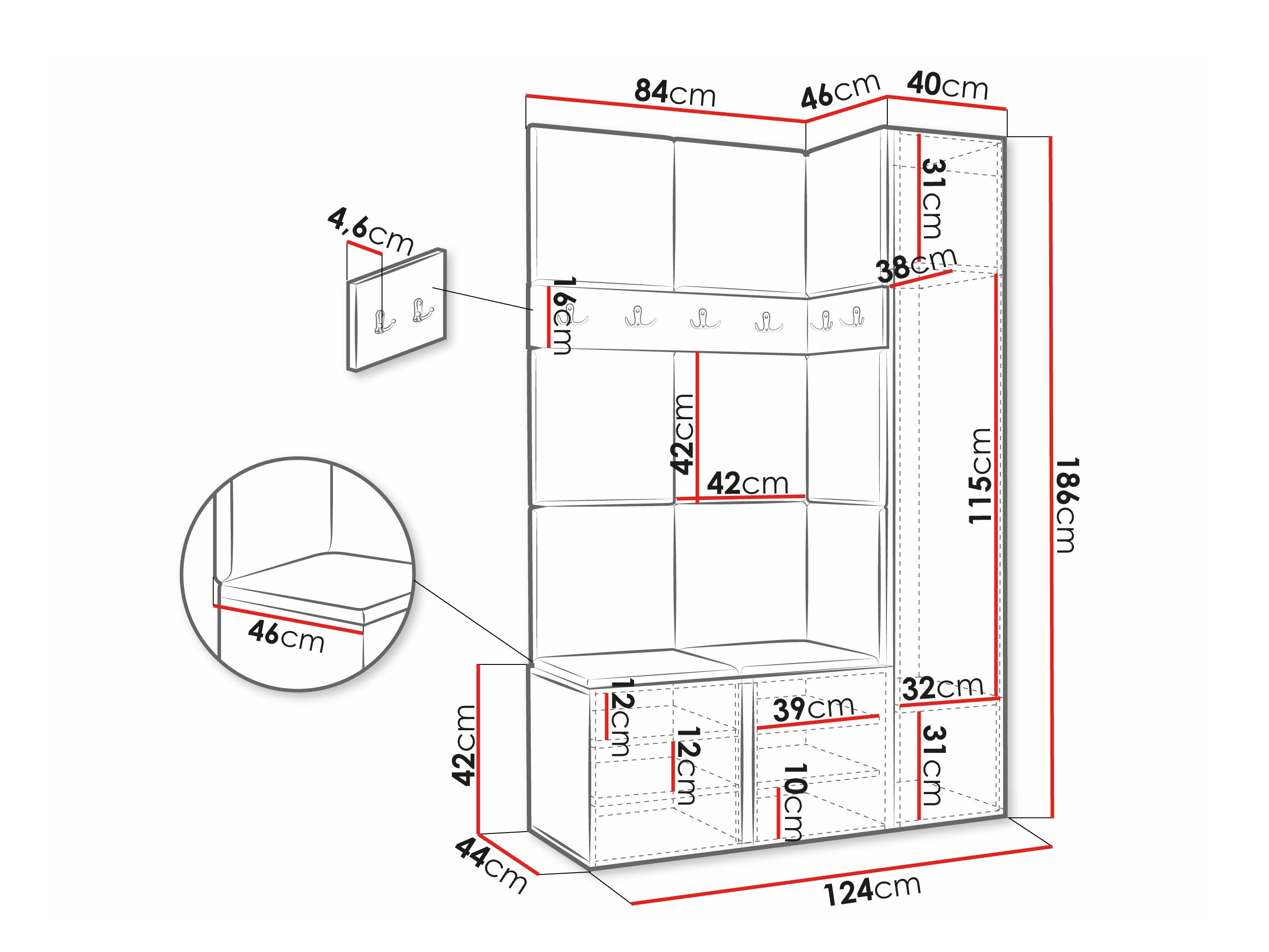 186 x 40 x 46 cm