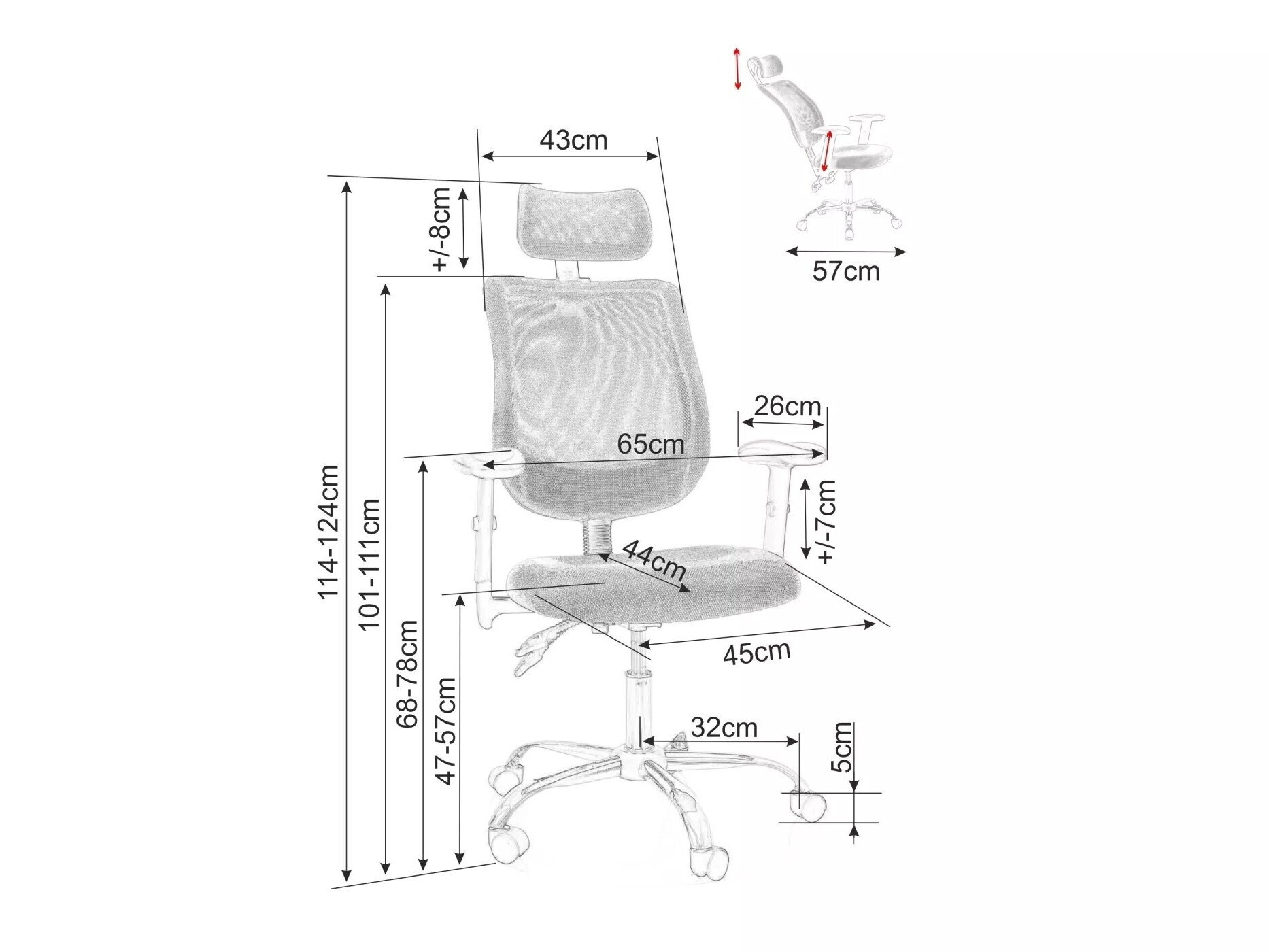 - Justerbare armlæn