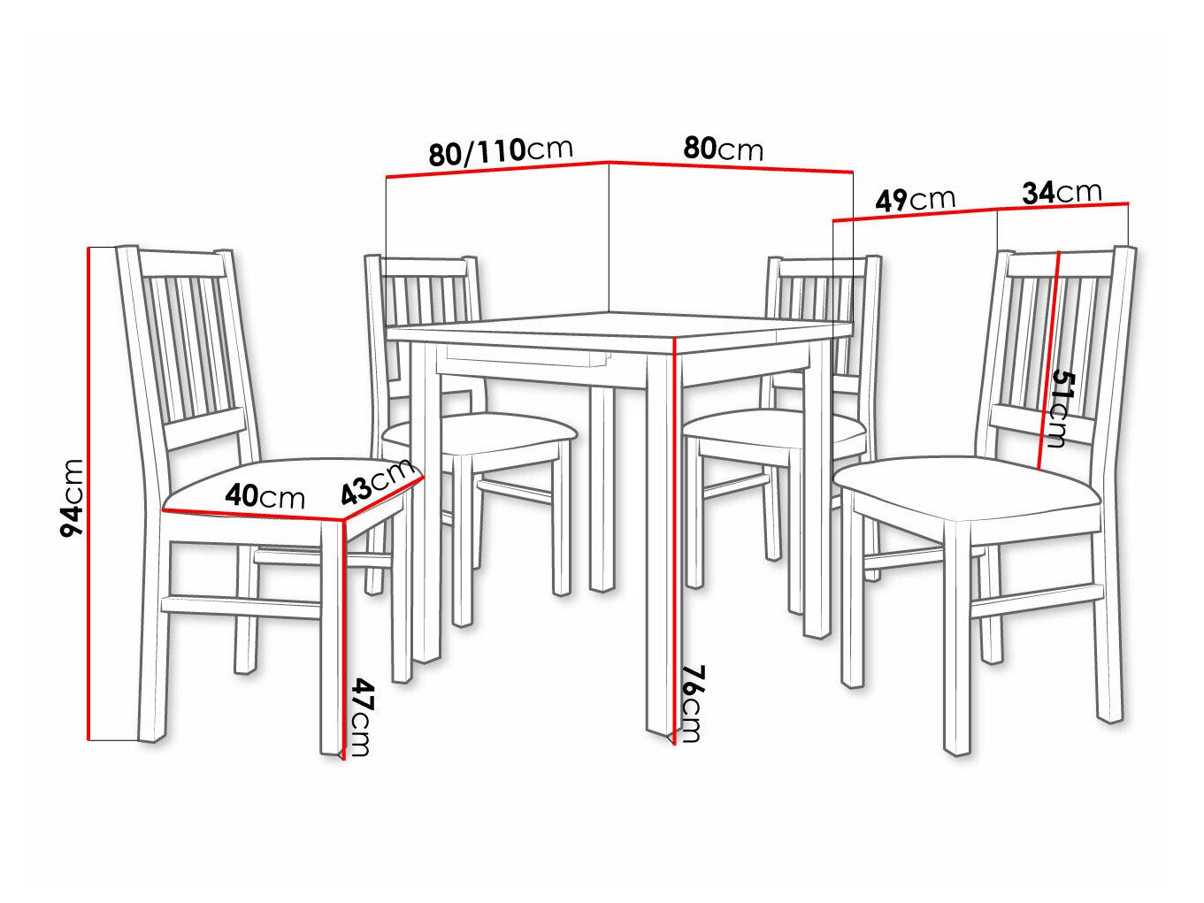 Dimensioner på stole: