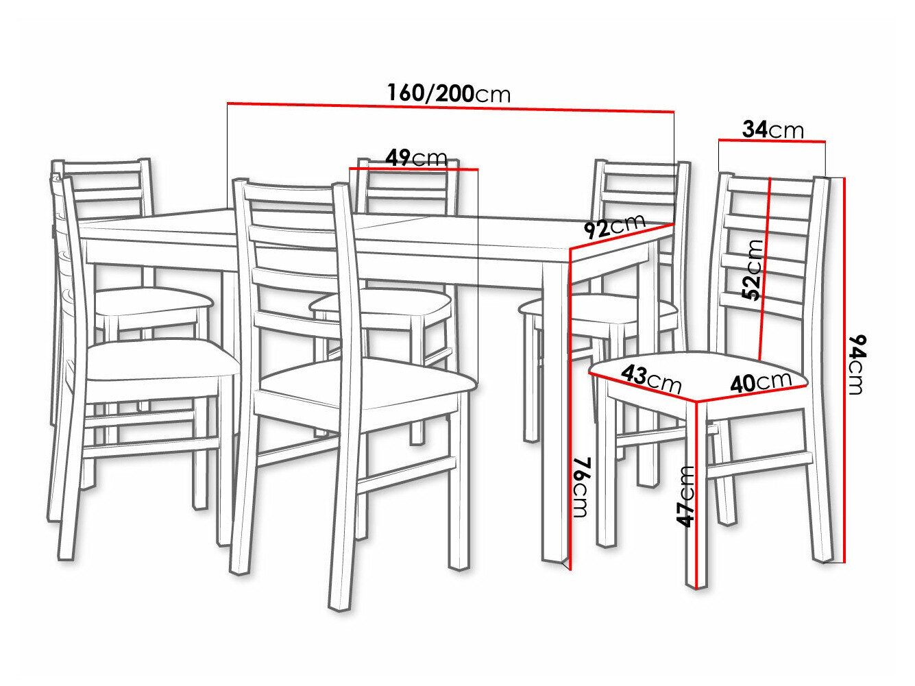 Dimensioner på stole: