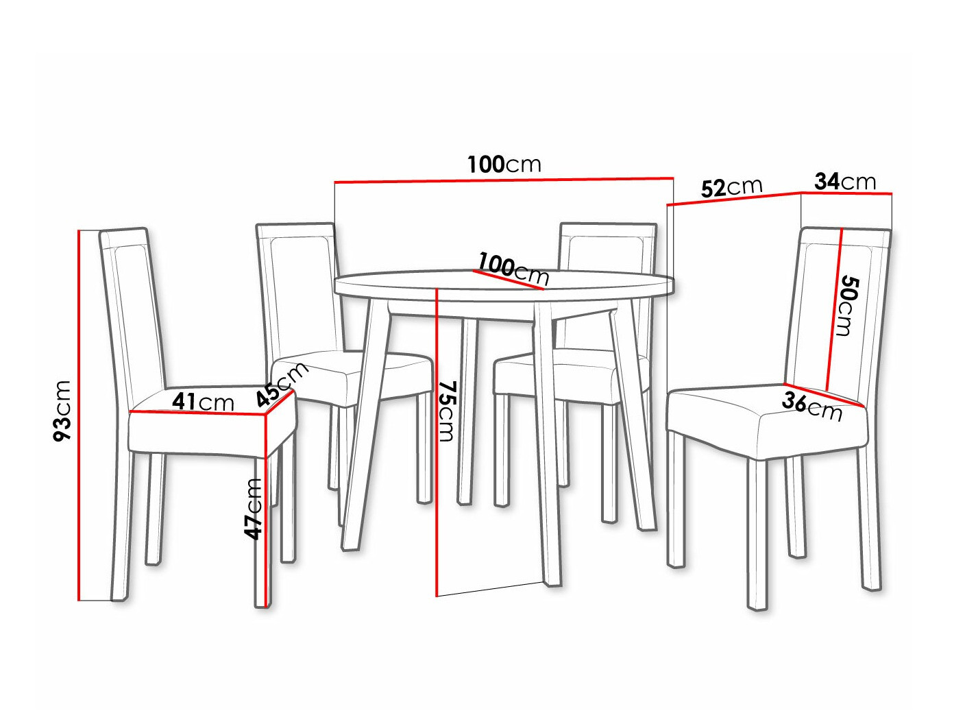 Dimensioner på stole: