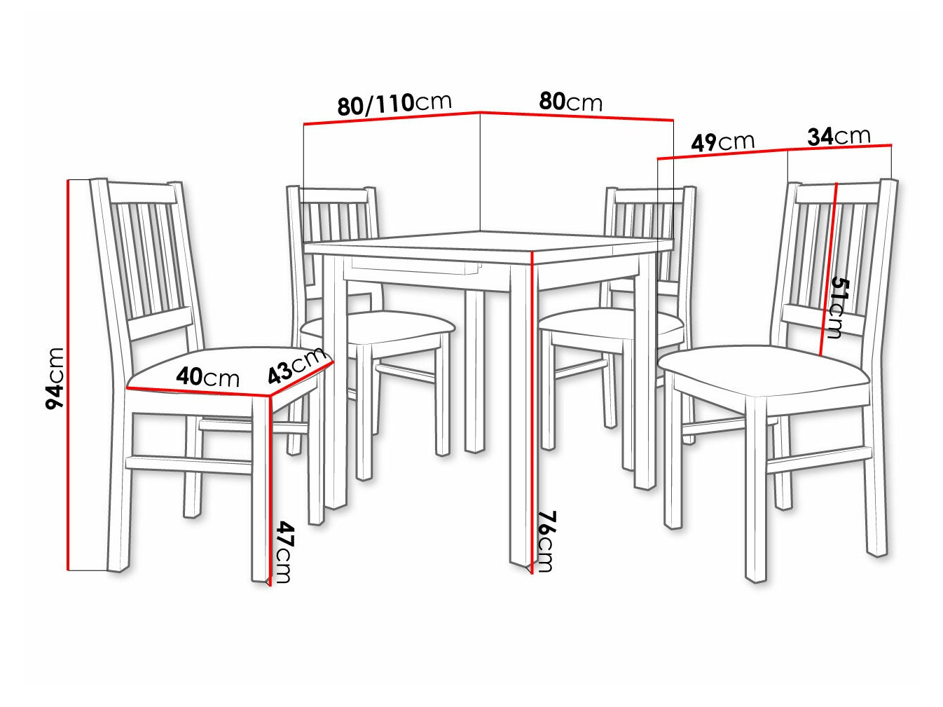 Dimensioner på stole: