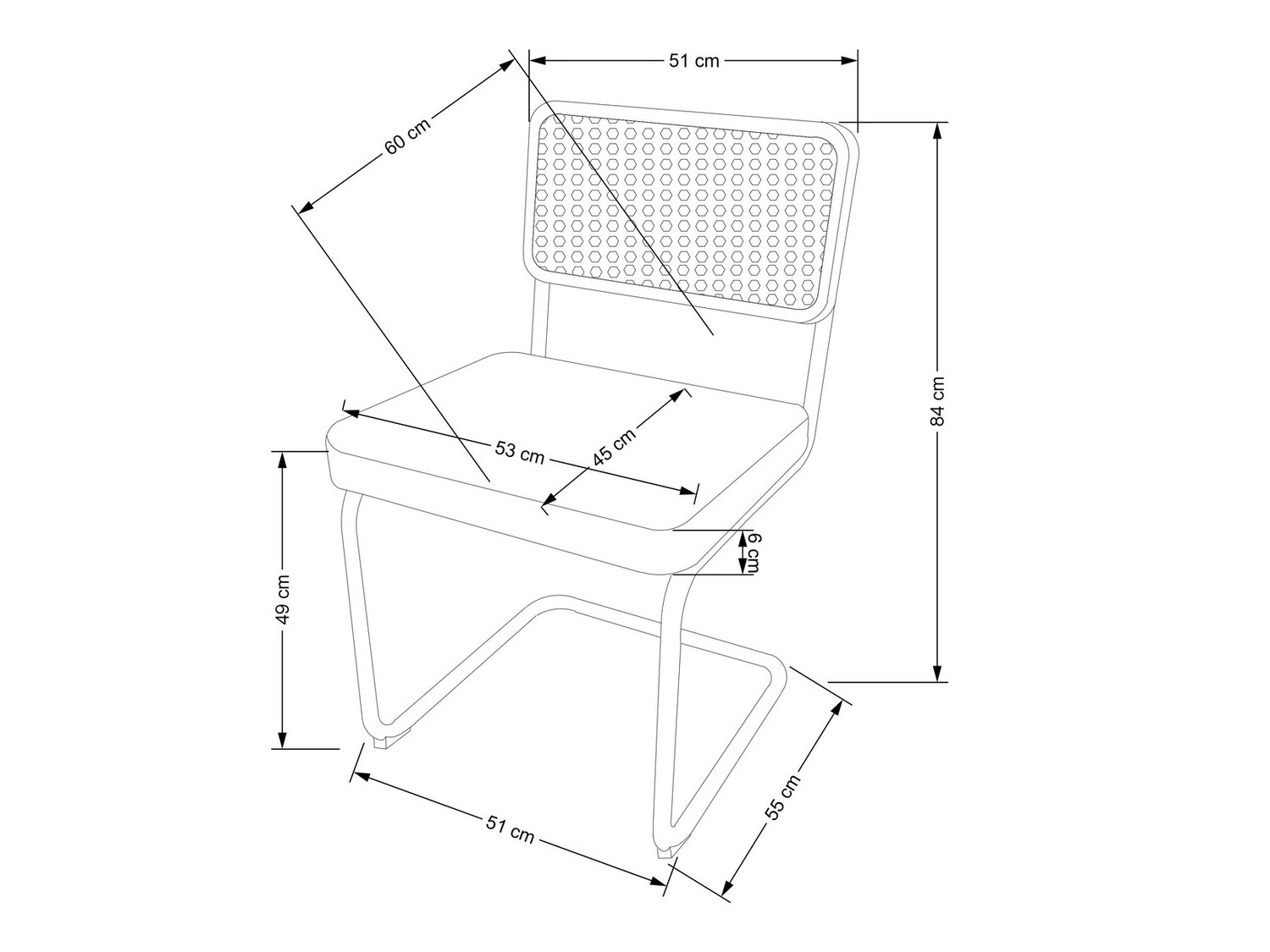 Tykkelse på sæde:
